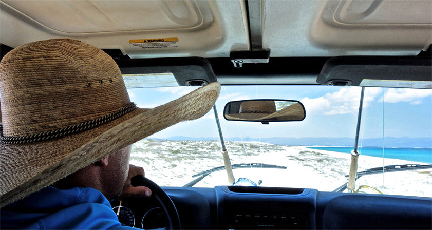 The jeep pushed confidently through the soft sand closer and closer to the turquoise sliver on the horizon. From fifty feet back it looked like a solid and capable rig. From twenty feet out you could certainly tell this vehicle had been around the peninsula a few times. At the rental facility where I first hopped in and went to let out the clutch in first gear- I shivered with doubt. Yep, it's a well-used rental car alright! When you want a 4x4 for the remote desert exploration, you want a stick shift. And when you get a stick shift in a Mexican resort town, it's been driven by a lot of people who've only driven automatics. This poor Jeep had been through the wringer, and I felt sympathy for it like an abused dog. Reluctantly, we headed away from civilization and towards the backcountry, unsure of just how far the rig would take us.