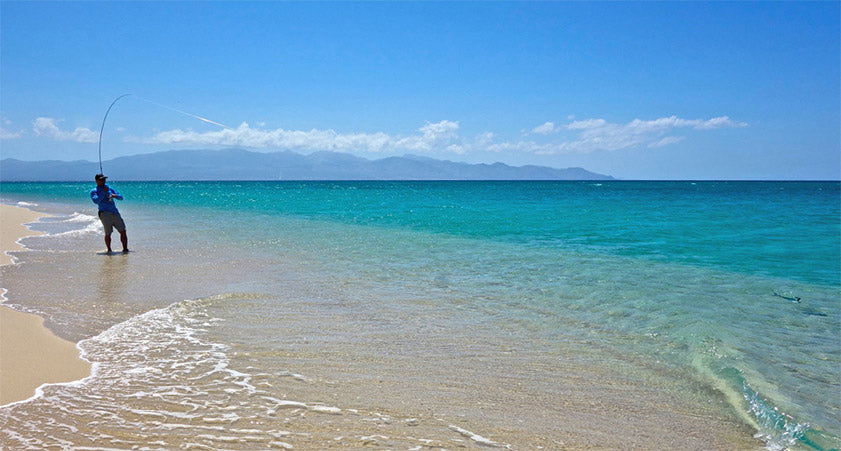 So as more and more large needle fish came funneling past this shallow beach I was fishing, I reached for a fly that I could spare. A fly that would no longer be considered for shots at legitimate target fish like roosters, jacks or dorados. The mullet pattern was one of a dozen I'd ordered for this trip, so sacrificing one here to witness the lightning fast attack of a 4 ft needle fish was something I considered fair trade. I paced up and down the span of beach where I'd been spotting fish. Out where the pastel colors of shallow water turned electric blue a faint smudge appeared and slid along a gradual heading towards the shore. I broke into a mild trot to get a closer look. As the points of our triangle narrowed, I noticed there were two fish and they were moving in a direct line, unlike the swerving, scavenging needle fish. These fish were moving fast too, so I shifted down and turned on the jets to catch up and see what they were. It was so easy to tell they were roosters. The elegant stripes were unmistakable. Beautiful fish cruising intently along the beach as if they were pulled from a fast moving rope.