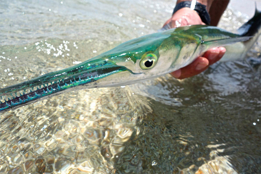 That's what I wondered several days into this trip while scanning the mildly wind-chopped water, squinting to locate anything that could be fish. I'd noticed several large needle fish patrolling the area, and throwing flies at them was so fun because the instant the fly hit the water the fish would spot it from nearly any direction and close in with such speed it was thrilling just to witness. Not many would actually eat my fly, but after a few hard slams I figured I'd better tie on a fly that I was willing to loose, given I wasn't properly tackled for such toothy critters.