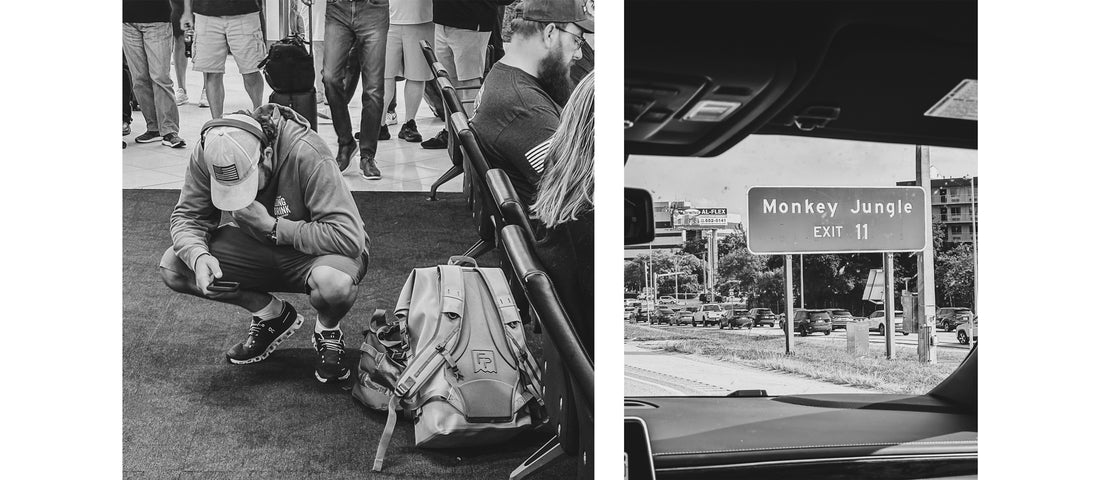 Outside baggage claim, we were met by Will, Peter, and a wall of heat. The Florida humidity hits you like it has a point to make. Before we even reached the car, we were peeling off layers of fleece and pulling on board shorts and sandals. Then, we hit the road.