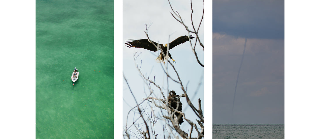 Moments later, Robert turned the key and we idled north, out of the marina and into the backcountry of Florida Bay. The oceanside to the south gets most of the attention. Its exposure to travel lanes, expansive sight lines, and shots at migrating fish attracts anglers from around the world. But the real heart of this place is in the backcountry, in the tangled maze of islands and flats where the landscape contrasts against the sky. The environment here is dynamic in a way that would take a lifetime to understand. Shallow runs of turtle grass. Cut channels lined with sponge. Mangrove islands blanketed by a cacophony of calls and squawks from resident and migratory birds. The occasional depression that hides the wreckage of a downed drug runner or a wayward vessel.